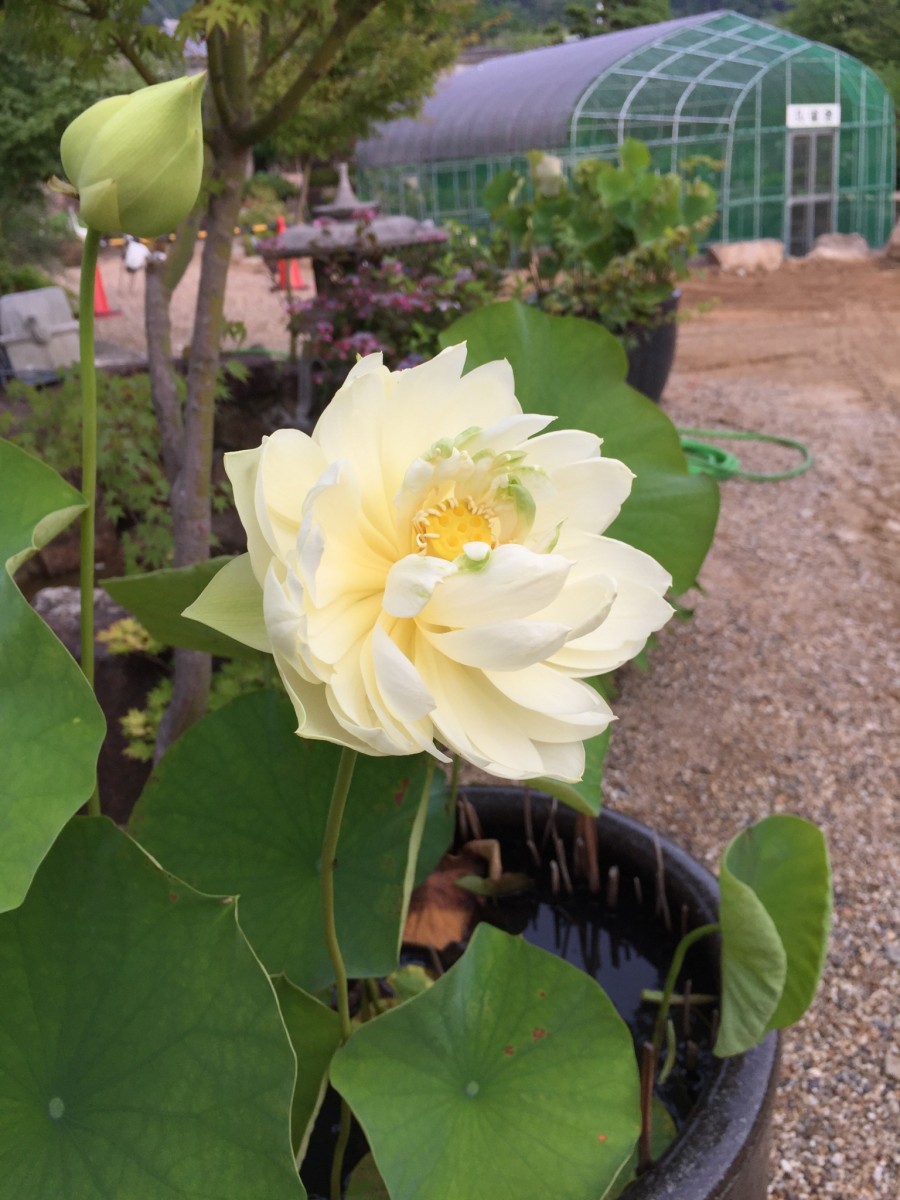 今日(6月24日)のハス 2017年6月24日 最終更新日時 : 2017年6月24日 webmaster 先日、いい雨を頂いたので、水撒きは当分お休み(^^) 今晩遅くから明日にかけて、また雨が降るとの事、ありがたい、今ならナンボでもwelcomeです。 さて、今日のハス、今朝撮りたてです。 今朝は7輪咲いてました。 地湧金蓮も元気です。 Follow me! @jouganji_nara FacebookX