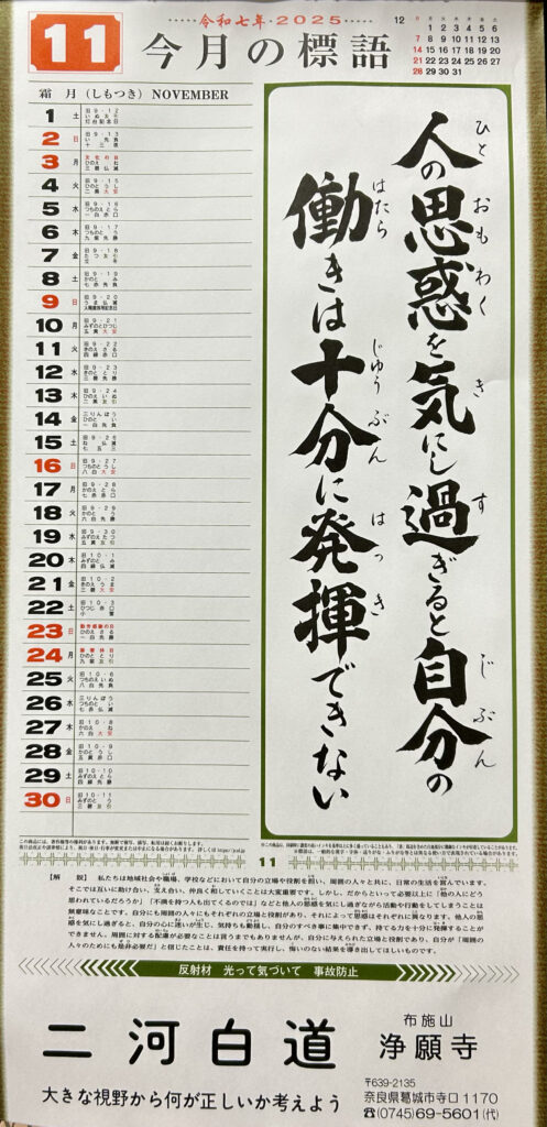さて、今日から11月、月初恒例のカレンダー 今月はこれ↓