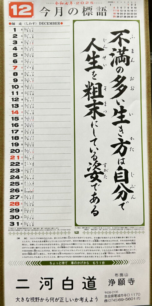 『不満の多い生き方は 自分で人生を粗末にしている姿である』